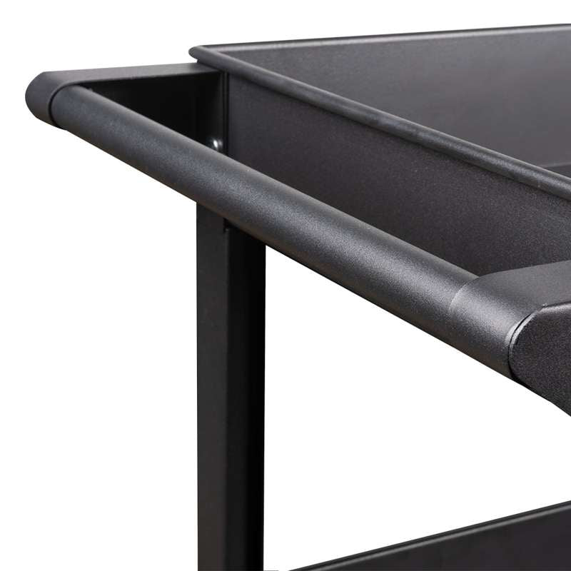 Vognen er fremstillet i slidstærkt SPCC-stål og udstyret med 3 rummelige hylder, hver med en kapacitet på op til 50 kg. Den samlede belastningskapacitet er 100 kg. Hver bakke måler 790 x 370 x 80 mm og har en afstand på 190 mm mellem sig, hvilket giver god plads til både større og mindre genstande.