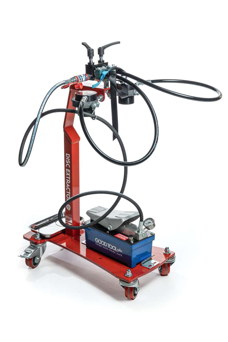 Dette ergonomiske, hydrauliske specialværktøj er udviklet til hurtig frigørelse af fastgroede bremseskiver – herunder flydende typer – fra tandede nav på lastbiler, busser og trailere (Volvo, Renault, DAF m.fl.).