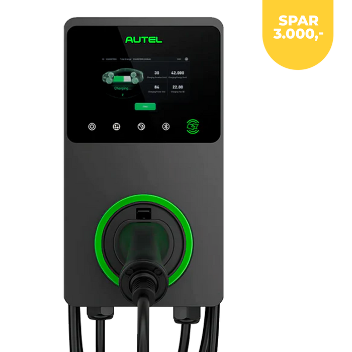 Flot ladeboks fra Autel i Mørkegrå. Med kølesystem og lav fejlrate. Tåler støv, olie og vand så perfekt til udendørs brug. Til Mode 3 ladning.