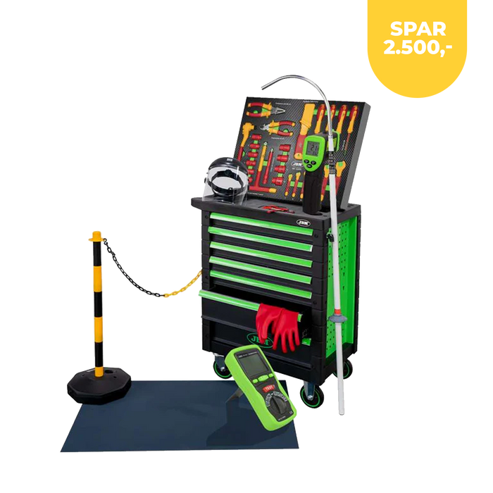 Dette komplette værktøjssæt fra JBM dækker det basale behov for at udføre service og reparationer af hybrid og elbiler.