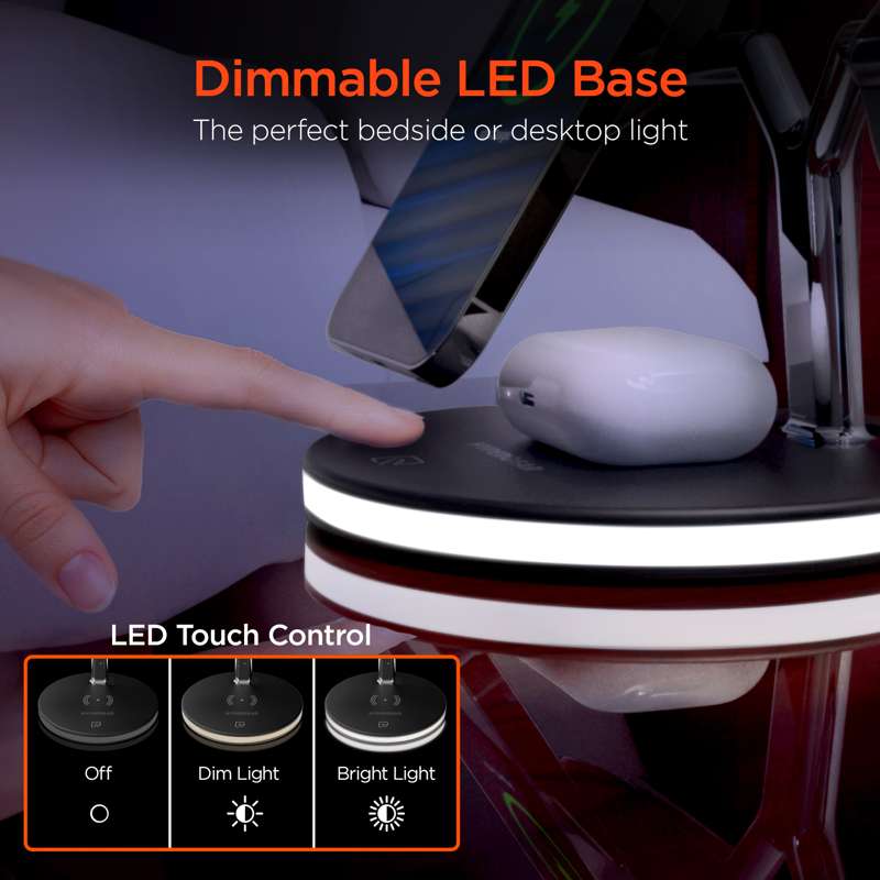 2 trådløse opladningsflader: Med to trådløse opladningsflader giver MaxCharge 3-i-1 alsidighed til dine AirPods, en anden telefon eller enhver Qi-aktiveret enhed.