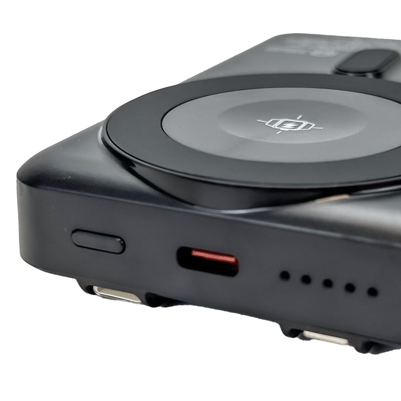 - 6-i-1 funktionalitet – trådløs opladning, indbyggede kabler og flere tilslutningsmuligheder samlet i én enhed.